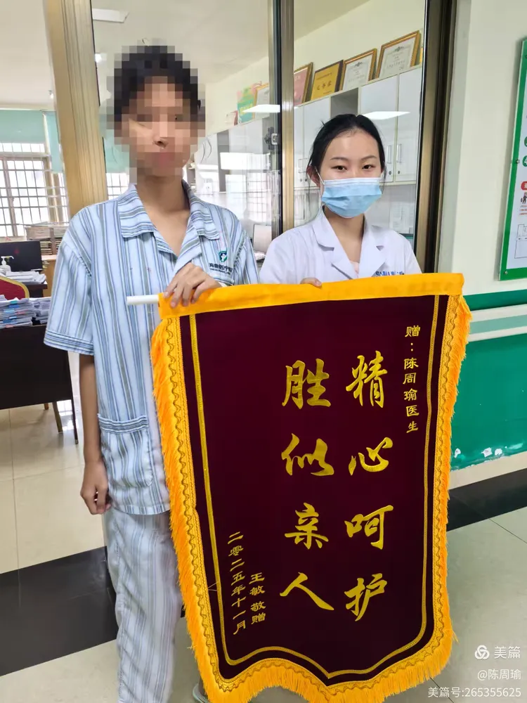康复后的王敏仿佛重获新生。上周,她和家人专程来到医院,将一面鲜红的锦旗送到陈周瑜医生手中。锦旗上“精心呵护,胜似亲人”八个金字在阳光下格外醒目。